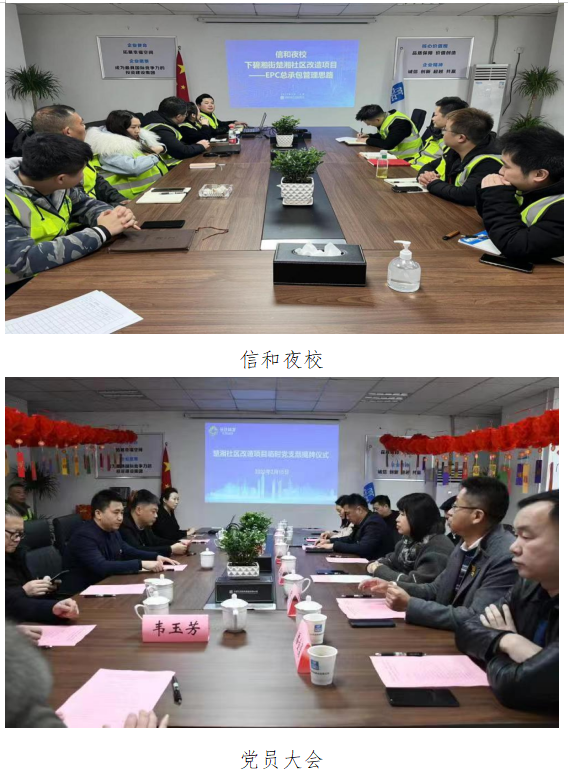 一是组织共建。支部由项目与社区党员共建共联,项目执行经理余杨藩担任书记,社区书记韦玉芳担任副书记,是推进“党建进工地、支部建在项目上”标杆创建向基层延伸的一次全新探索。二是载体共建。支部坚持走好党的群众路线,挖掘社区党员骨干和意见领袖,成立“惠楚湘”党员特别工作小组,寓意为“利在民生、惠及楚湘”;构筑“党建+网格分区”连心桥,梳理社区157名党员,融入施工图四大分区,形成“支部+党小组+楼栋长+网格党员”立体党建阵地,高效驱动党建引领。三是文化共建。与社区共建“外卖小哥红色之家”,将“同心惠民”理念嵌入社区特色党建,探索党建品牌IP联名,缔结浓浓楚湘情;共建信和夜校,邀请局内部讲师、业主代表及居民朋友参与翻转课堂,开展消防安全、普法教育等夜校17期;共建党建工作月历,联动社区梳理进度节点、传统节日形成党建月历,首次梳理党建活动55项,着重突出21项,明晰重点,同心蓄力。