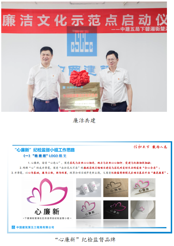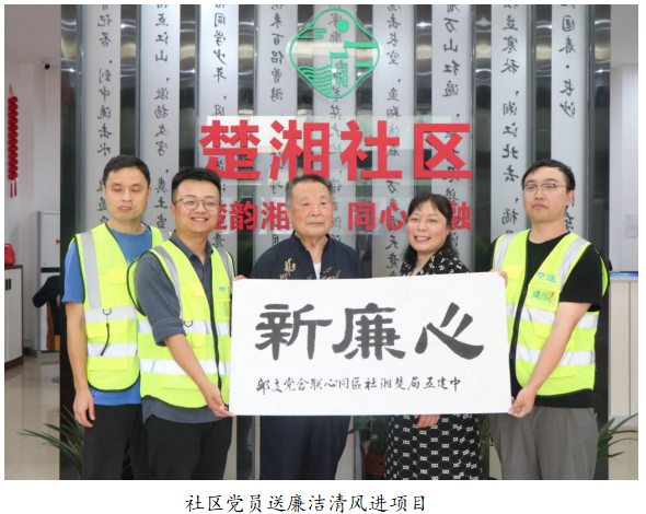 二是品牌共享亮形象。支部先后通过与社区共建湖南省首批“快递外卖小哥红色之家”、践行“守望楚湘”超英志愿服务、发布“心廉新”纪检监督品牌,充分发挥党建引领,匠心引领作用,擦亮了中建五局作为央企在社区居民心中担当作为的形象,不仅从“面”上帮助社区快速完成更新改造,更从“里”到外同时提升了社区和企业在地方的社会影响力。