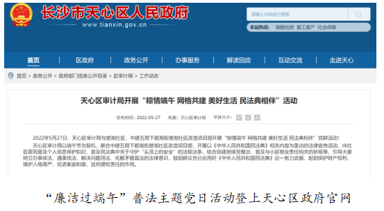 一是资源共享出精品。支部联动社区、业主与各级职能部门开展党建联建活动,长沙市人居环境局联点指导项目党建工作,与天心区司法局共建司法广场,与天心区审计局开展“廉洁端午”主题党日活动等,相关活动登上天心区人民政府网,获得官方认可。
